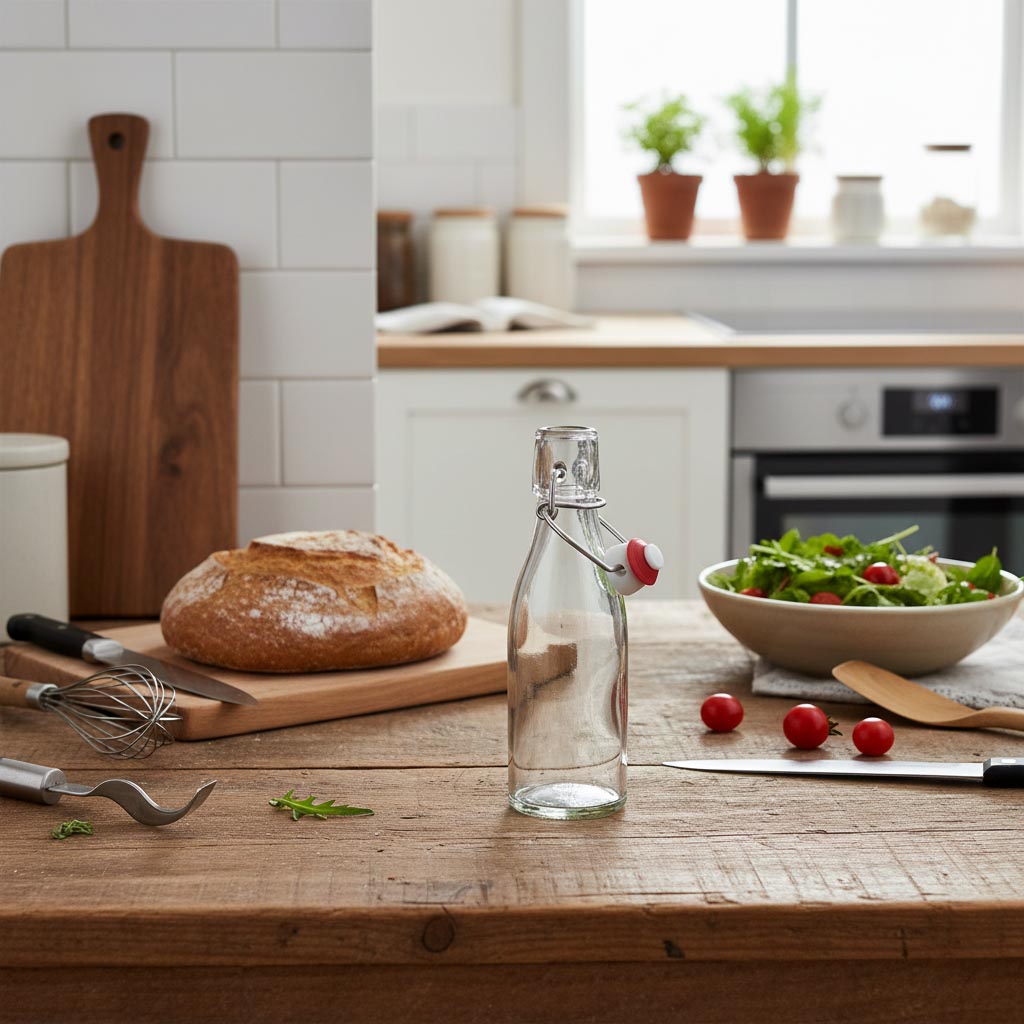 Seria produktów „Paul” od Flaschenland obejmuje wysokiej jakości szklane butelki o pojemności 200 ml z praktycznym zamknięciem na klamrę, które wyróżniają się wszechstronnym zastosowaniem oraz trwałymi właściwościami. Te szklane butelki zostały specjalnie zaprojektowane do przechowywania i spożywania likierów, napojów spirytusowych oraz innych napojów. Butelki z serii „Paul” wykonane są z odpornego szkła, które jest zarówno odporne na niskie, jak i wysokie temperatury. Dzięki temu nadają się nie tylko do mycia w zmywarce, lecz także do używania w mikrofalówce i piekarniku, co zapewnia wyjątkową elastyczność użytkowania. O pojemności 200 ml oferują idealny rozmiar na niewielkie ilości, a bezpieczne zamknięcie na klamrę zapobiega wyciekaniu i zachowuje świeżość zawartości.