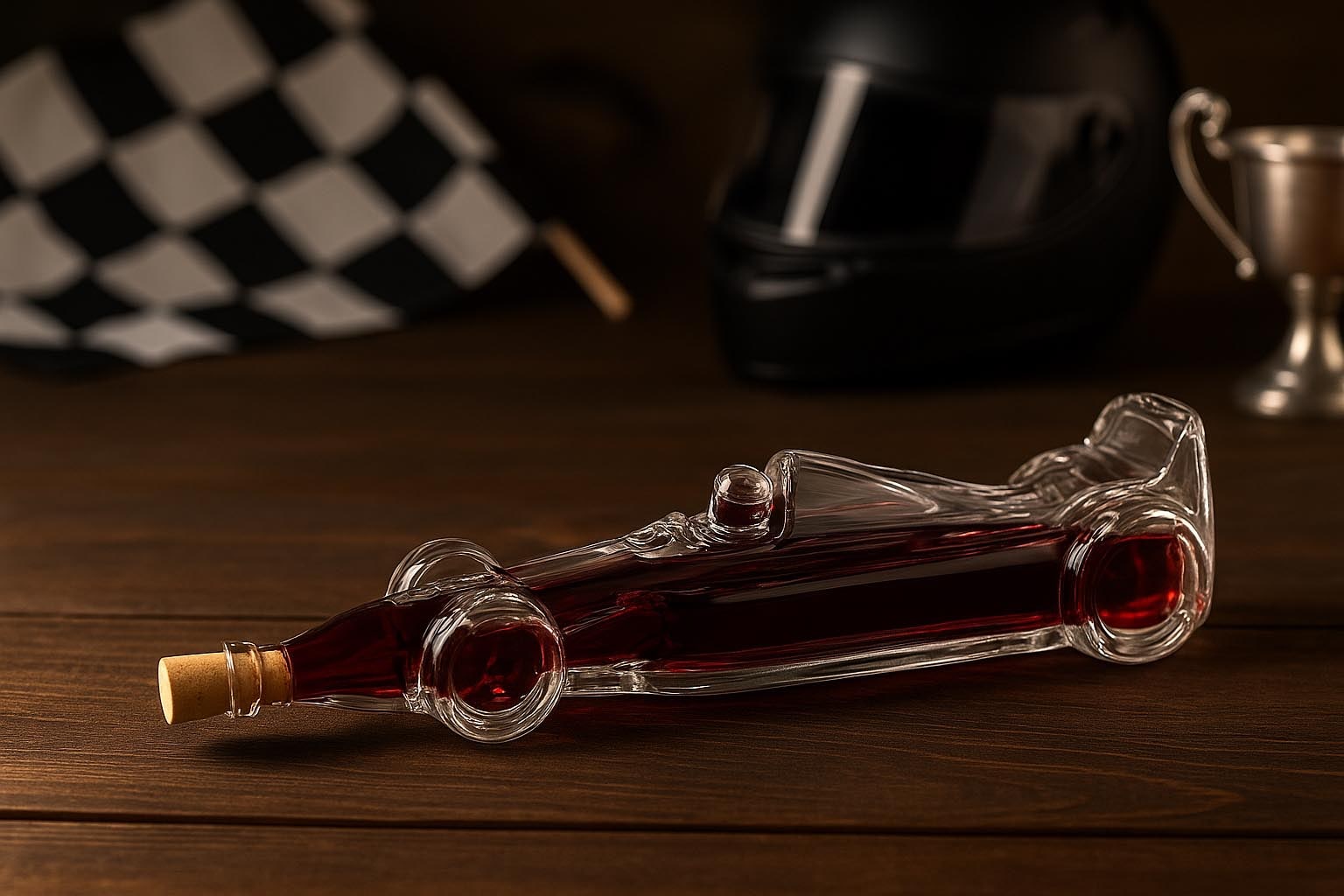 Butelka z motywem „Samochód wyścigowy” to wyjątkowa atrakcja dla fanów motorsportu i miłośników stylowych opakowań. Jej szczegółowy kształt doskonale oddaje dynamikę i elegancję klasycznego samochodu wyścigowego, czyniąc ją idealnym wyborem na wyjątkowe alkohole, brandy czy likiery. Wykonana z wysokiej jakości przezroczystego szkła, łączy wyrazisty design z doskonałym wykonaniem. Korek zapewnia stylowe zamknięcie i nadaje butelce szlachetny charakter. Niezależnie od tego, czy jako prezent dla entuzjastów wyścigów, czy jako ekskluzywna butelka kolekcjonerska – butelka „Samochód wyścigowy” podkreśli każdy napój szybkością i stylem.