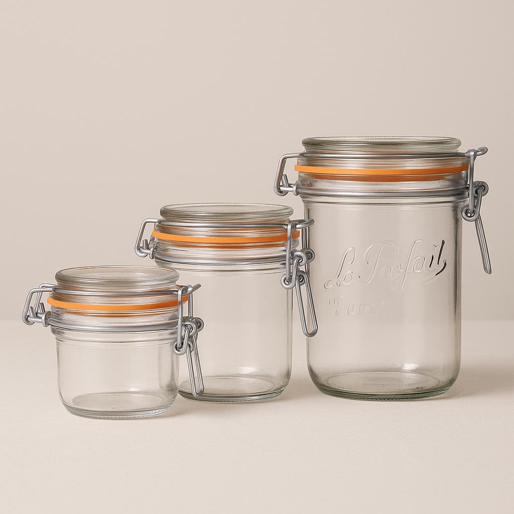 Seria "Super Terrine" marki Le Parfait to autentyczne francuskie rzemiosło, oferujące wysokiej jakości rozwiązanie do konserwacji i prezentacji żywności. Ten klasyczny słoik z drucianym zamknięciem i reliefem "Le Parfait Super" został specjalnie zaprojektowany jako słoik do odwracania, co umożliwia łatwe wyjmowanie ciast, tortów i innych deserów. Doskonale nadaje się również do dżemów, konserw mięsnych oraz różnorodnych wyśmienitych past. Z pojemnością od 125 do 1000 ml "Super Terrine" oferuje wszechstronne zastosowanie. Dołączona szklana pokrywka oraz charakterystyczna pomarańczowa gumka zapewniają bezpieczne, szczelne zamknięcie.