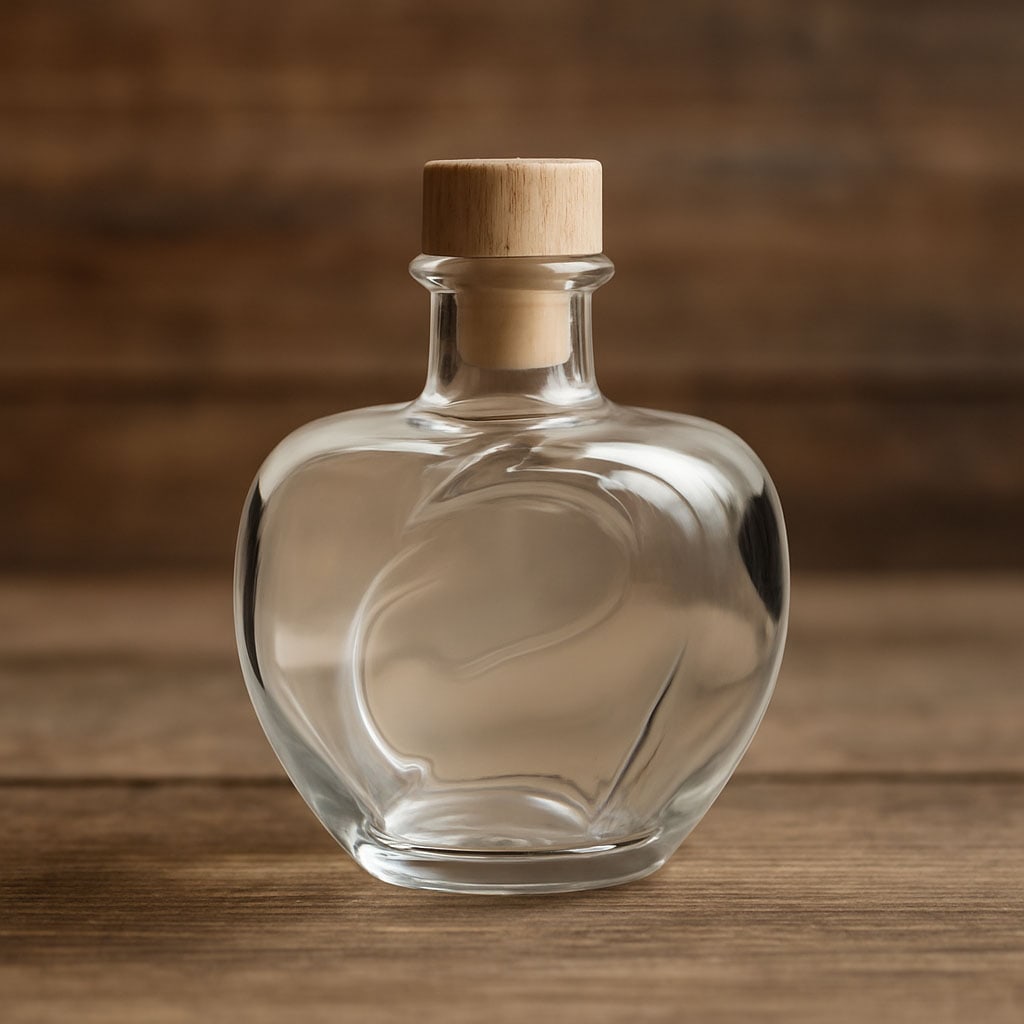 Butelka z motywem „Jabłko” zachwyca swoim unikalnym, jabłkowatym kształtem i jest idealnym wyborem dla szlachetnych brandy owocowych i likierów. Jej szczegółowy design wykonany z wysokiej jakości przezroczystego szkła podkreśla naturalny charakter zawartości i czyni ją prawdziwą ozdobą. Korek zapewnia stylowe i bezpieczne zamknięcie, a harmonijny kształt akcentuje wartość produktu.