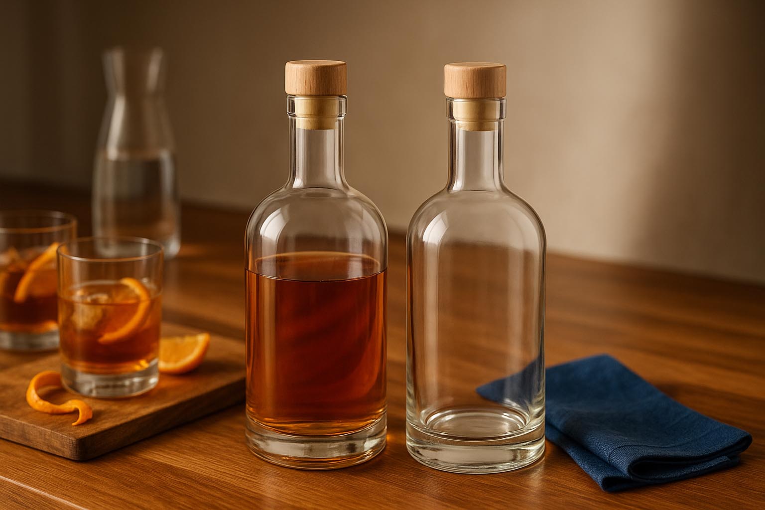 Buteleka designerska Franco łączy włoskie rzemiosło z ponadczasową elegancją, oferując stylowe rozwiązanie dla wysokiej jakości alkoholi, likierów, syropów i innych ekskluzywnych produktów. Dostępna w rozmiarach 500 i 700 ml, zachwyca czystymi liniami i harmonijnym kształtem, który doskonale eksponuje każdą zawartość. Klasyczne korkowe zamknięcie zapewnia bezpieczne i eleganckie uszczelnienie – odpowiednie zamknięcia są dostępne w naszej ofercie. Dzięki wysokiej jakości wykonania i minimalistycznemu designowi Franco jest idealnym wyborem dla marek, które chcą połączyć ekskluzywność i elegancję w jednej butelce.