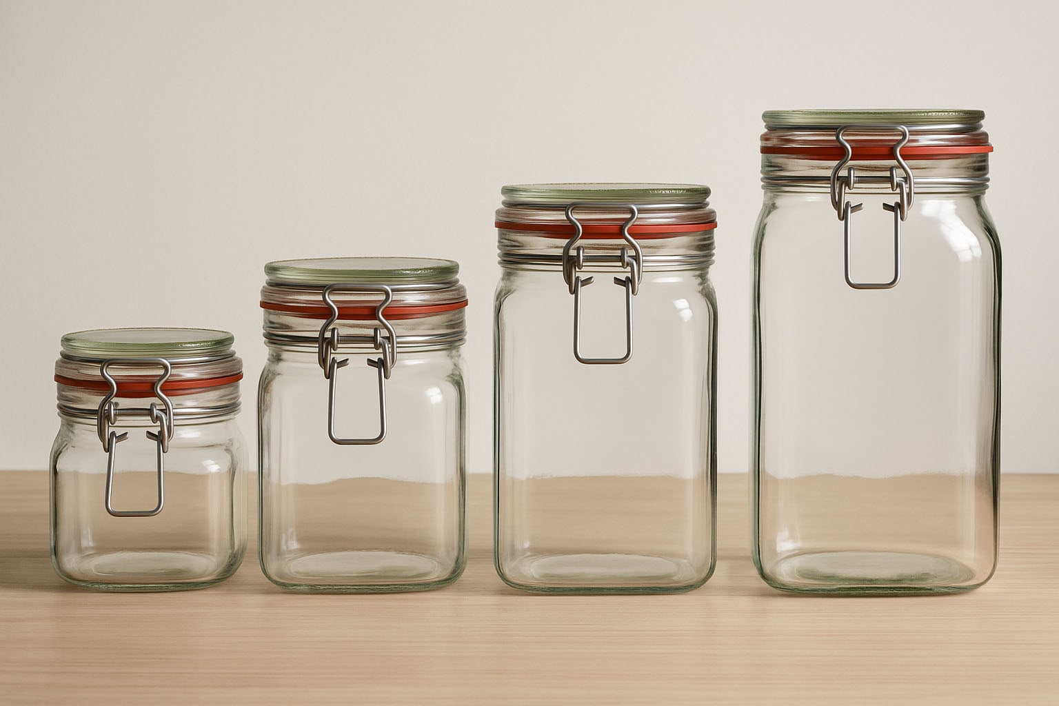 Kwadratowe słoiki z drucianym zamknięciem