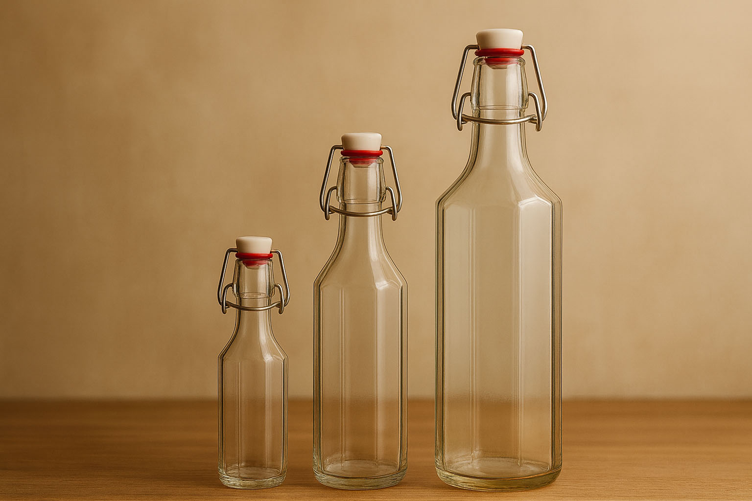 Seria „Bravo” zachwyca swoim charakterystycznym, dziesięciokątnym kształtem, który łączy elegancję z funkcjonalnością. Wykonana z wysokiej jakości szkła bezbarwnego, ta wyjątkowa butelka stylowo eksponuje zawartość. Dostępna w pojemnościach od 250 do 1000 ml, „Bravo” oferuje idealne rozwiązanie dla różnorodnych napojów. Dzięki praktycznemu zamknięciu na klamrę, do którego odpowiednie korki są dostępne w naszym asortymencie, łączy tradycyjny system zamykania z nowoczesną estetyką.