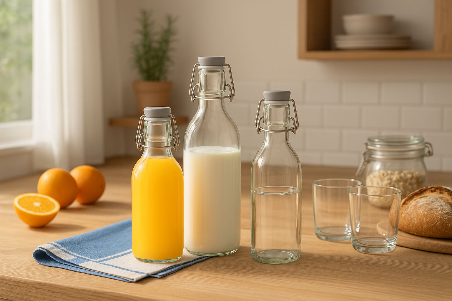 Dzięki uniwersalnemu designowi seria „Emilia” doskonale nadaje się do soku, mleka, wina oraz wielu innych produktów płynnych. Niezależnie od tego, czy jest to codzienne użytkowanie w kuchni, gastronomii, czy jako ekologiczne opakowanie dla produktów premium – łączy stylową prezentację z praktycznym użytkowaniem.