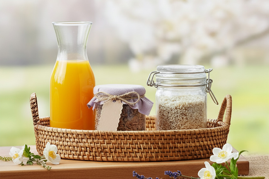 Przykładem może być świat tematyczny „Śniadanie na łonie natury”: Zaprezentujcie Państwo dżemy, miody lub soki w dekoracyjnych słoikach i butelkach – na przykład w klasycznych słoikach na miód, małych słoikach okrągłych lub stylowych butelkach na sok. Uzupełnijcie ekspozycję o łyżeczki degustacyjne i niewielkie słoiczki z próbkami, umożliwiając klientom spróbowanie różnych smaków na miejscu. To buduje zaufanie do jakości produktów i sprzyja spontanicznym decyzjom zakupowym.